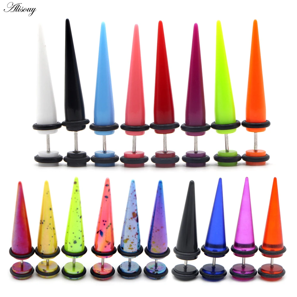 Alisouy 2 pièces Punk hommes femmes Faux bouchons d'oreille Cartilage cône jauges extenseur civière Piercing boucle d'oreille Bijoux de corps Faux Bijoux