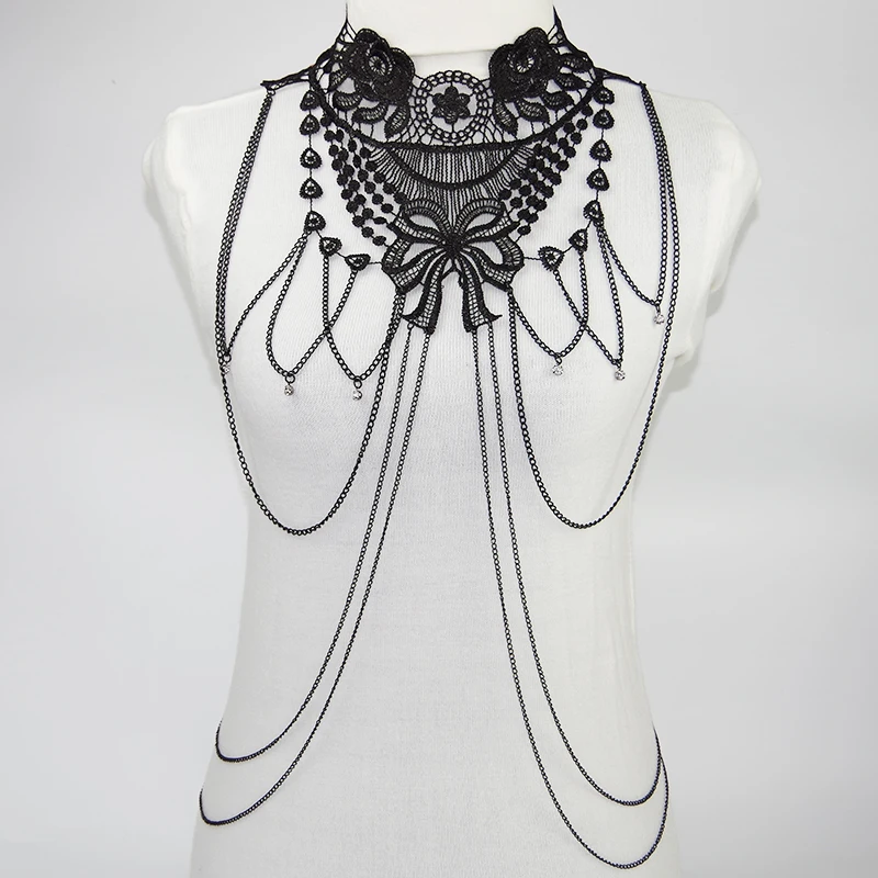 Chaîne de corps en dentelle noire, bijoux pour femmes, Costumes d'halloween Cosplay, accessoires gothiques féminins