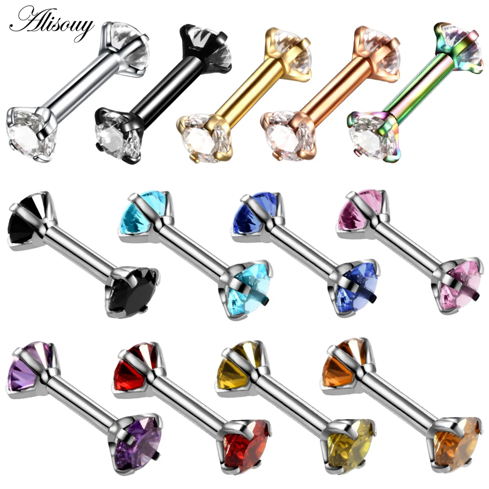 Alisouy 1pc 316L acier inoxydable sourcil haltère Piercing boucles d'oreilles zircon cubique Helix anneau Labret lèvre Piercing sourcil bijoux