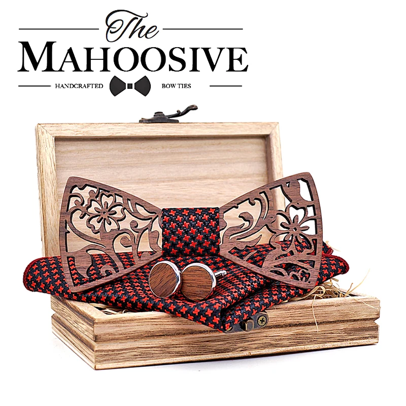 Ensemble de nœuds papillon en bois pour hommes, boutons de manchette, mouchoir, fête de mariage, affaires, présidence, 4 pièces