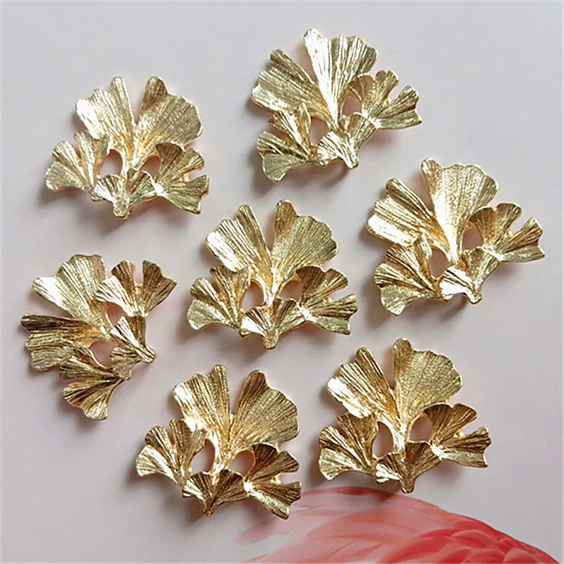 Boucles d'oreilles ras du cou en alliage, 10 pièces/lot, pendentif en feuille d'or, boutons à dos plat, ornements de bijoux, accessoires de bijoux faits à la main