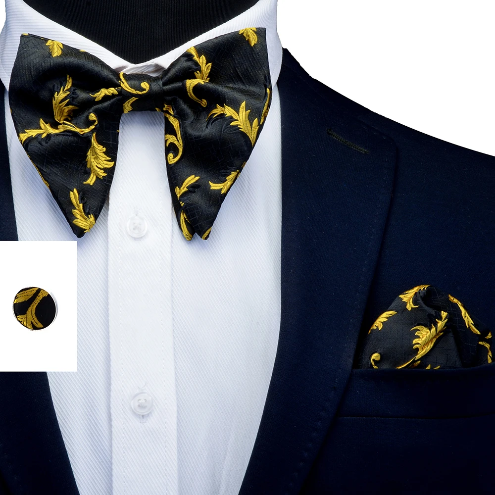 Ensemble de boutons de manchette à gros nœud papillon pour hommes, mouchoir floral, double possède, nœuds papillon rouges, carrés de poche, mariage, nouveau