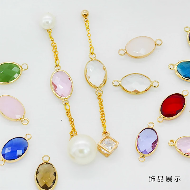 Cristal ovale strass facettes encadré verre pendentif collier connecteur boucle d'oreille résultats 2 boucles bijoux à bricoler soi-même faisant perle en métal