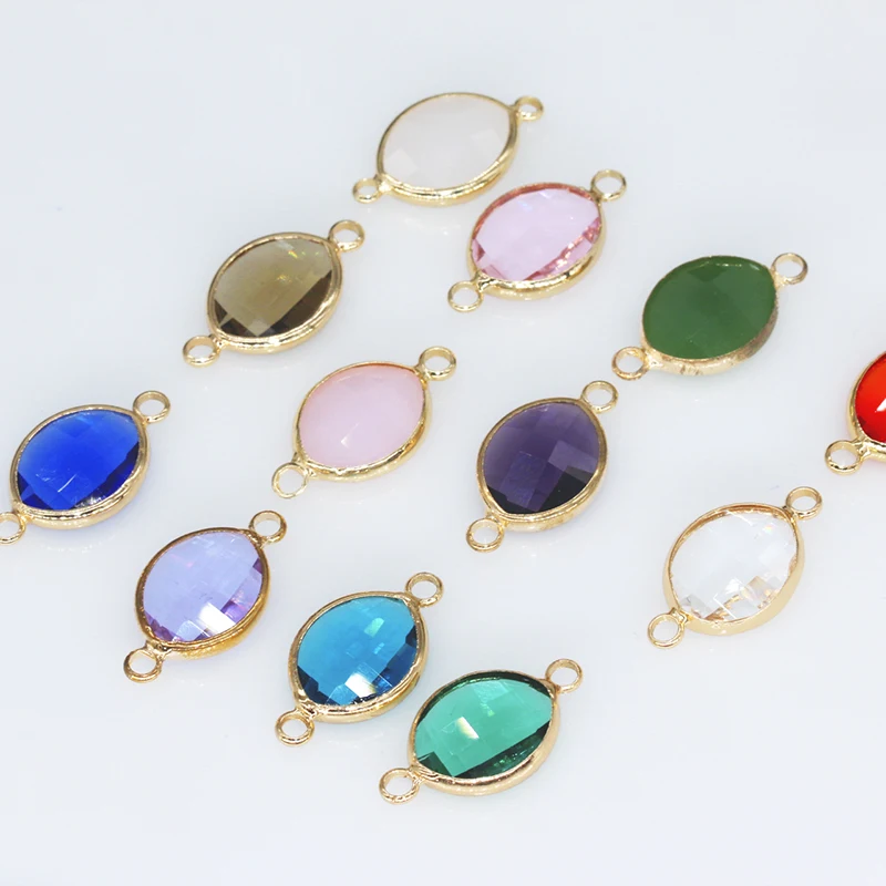 Breloque en verre encadrée en forme de feuille, 12p10x14mm, pendentifs en cristal, connecteur, collier, boucles d'oreilles, décoration, fabrication de bijoux, perles à 2 boucles