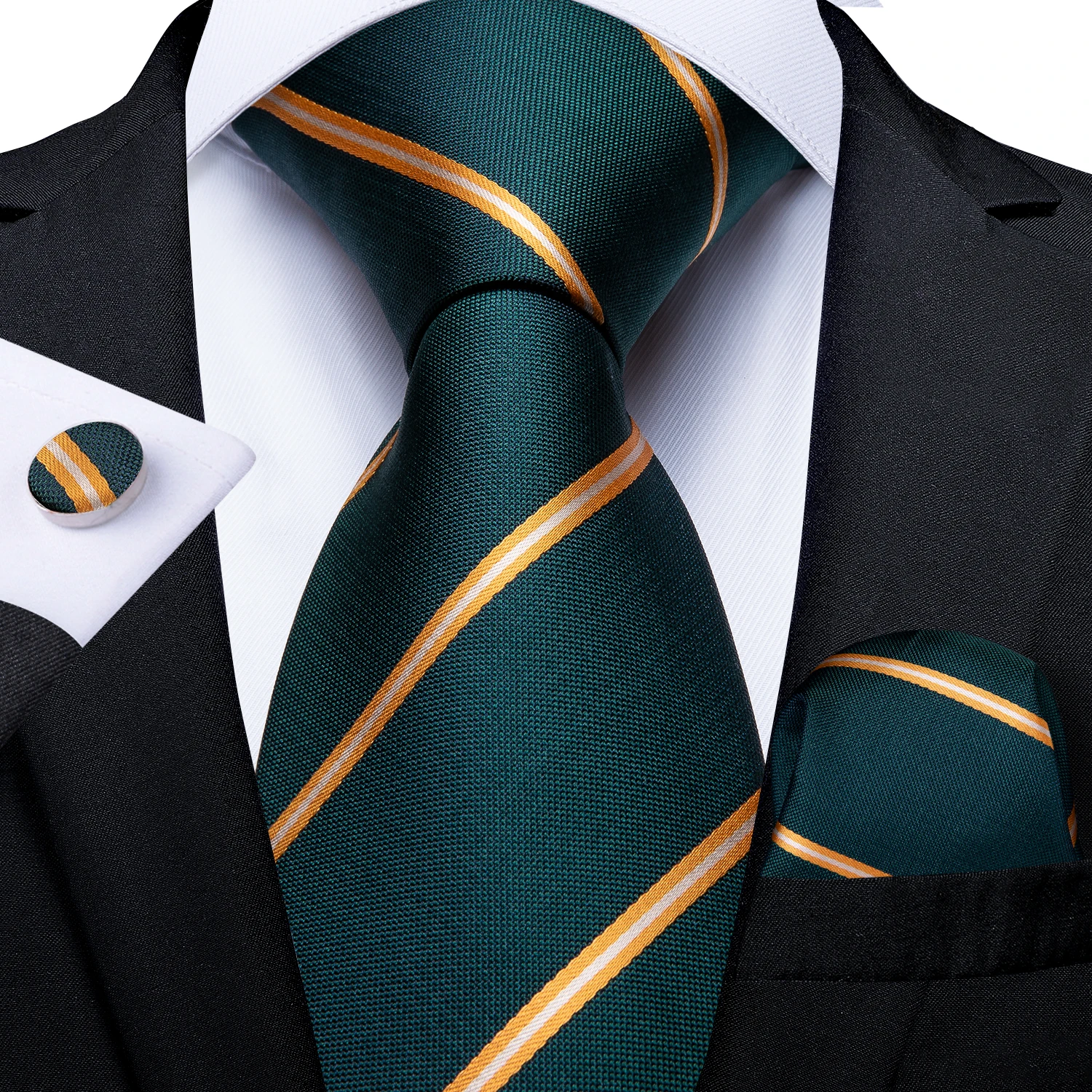 Nouveau vert or rayé hommes cravates en soie 8 cm affaires fête de mariage cravate poche carré boutons de manchette hommes cadeau Gravatas DiBanGu