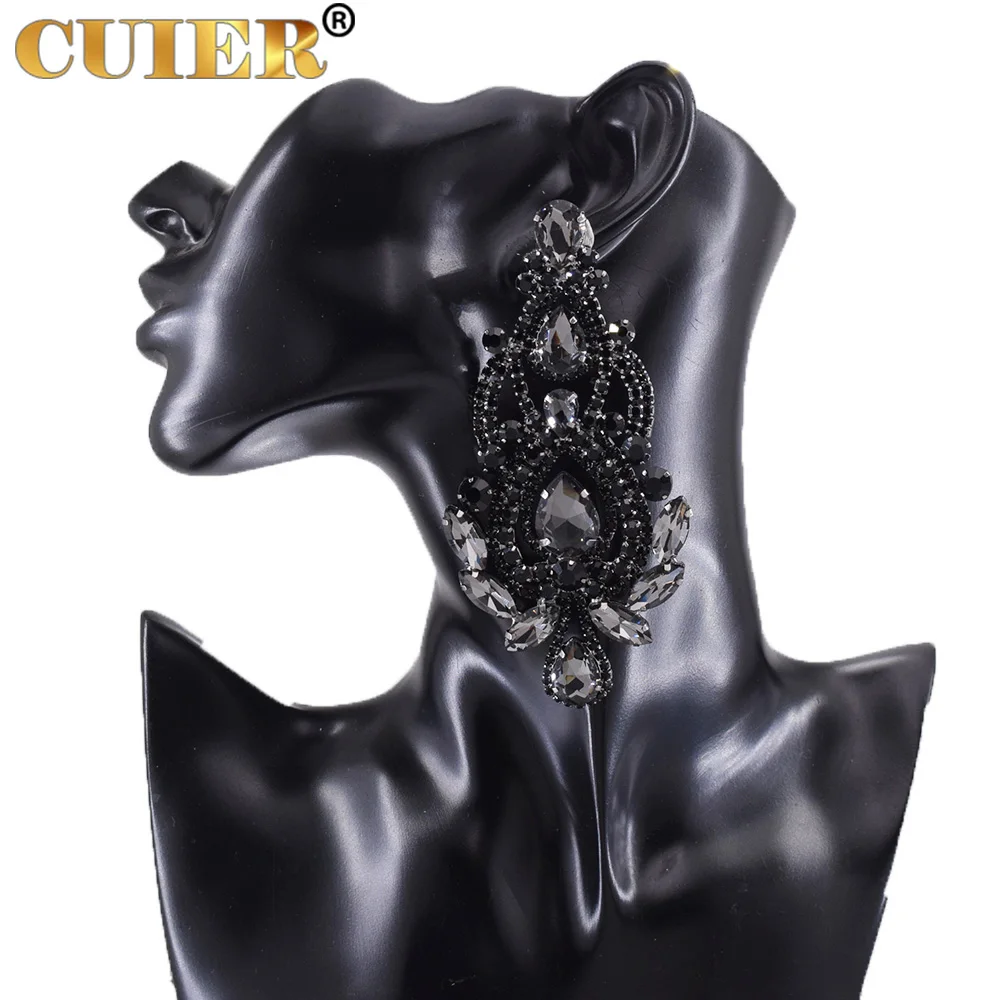 CuiEr 10.5 cm grande taille boucles d'oreilles pour mariage bijoux de mariée strass verre goutte d'eau femmes boucle d'oreille Jet hématite placage