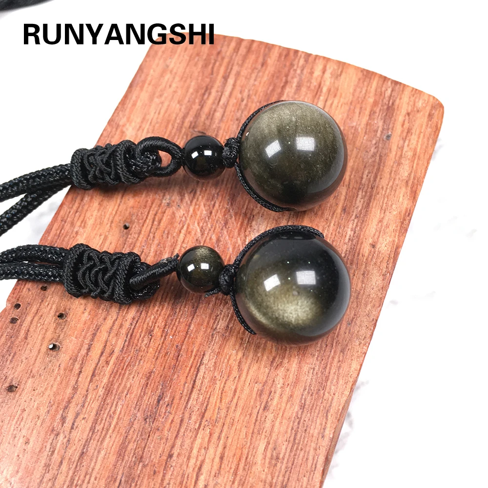 Runyangshi – collier en obsidienne dorée, pendentif en perles de 15mm, bijoux porte-bonheur pour femmes et hommes, 1 pièce