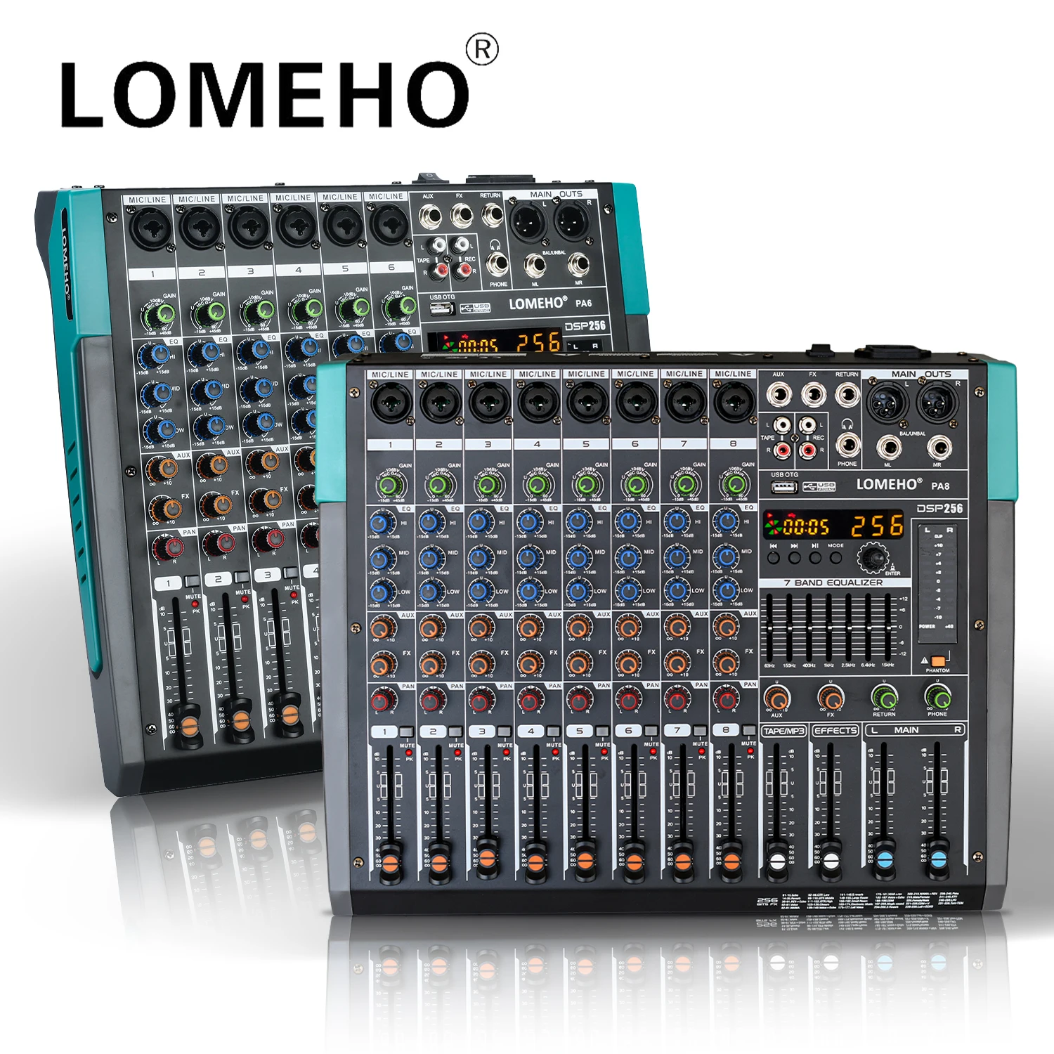 LOMEHO-Console de centre commercial audio Bluetooth Assad, 6/8 canaux, effets numériques 256, table sonore, 48V, USB, lecture, enregistrement, contrôleur DJ, PA6, 8