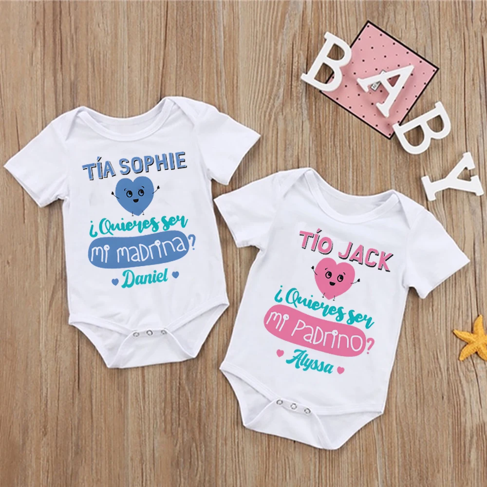 Tante que vous voulez être ma marraine/père imprimé body bébé nom personnalisé demande infantile marraine parrain combinaison barboteuse