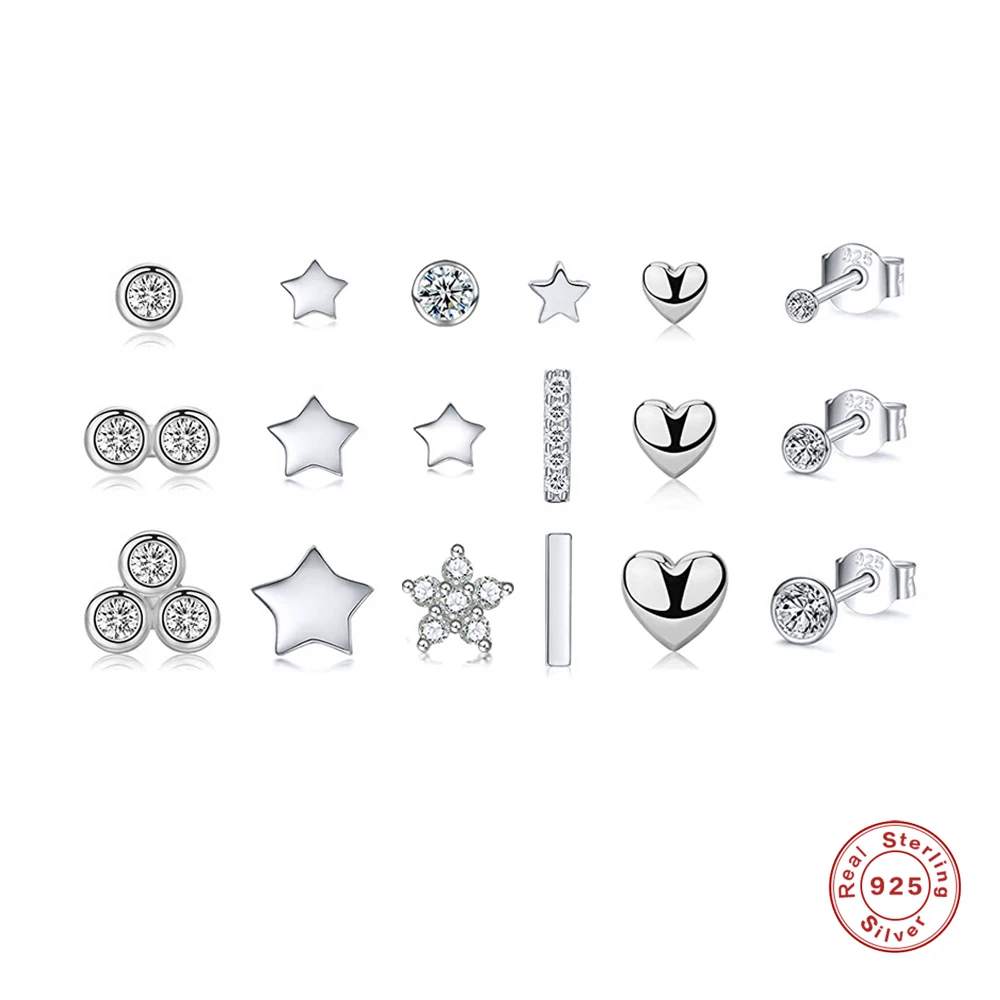 Aide 925 en argent Sterling étoile diamant boucles d'oreilles pour les femmes Mini zircon cubique bijoux géométrique oreille goujon ensemble bijoux cadeau
