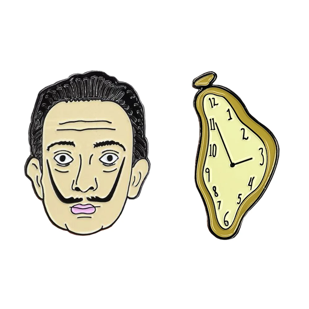 Salvador Dali – broche de peintre surréaliste en émail et en forme d'horloge fondue, badge d'art pour hommes, bijoux mignons, cadeau d'artiste, accessoire pour femmes