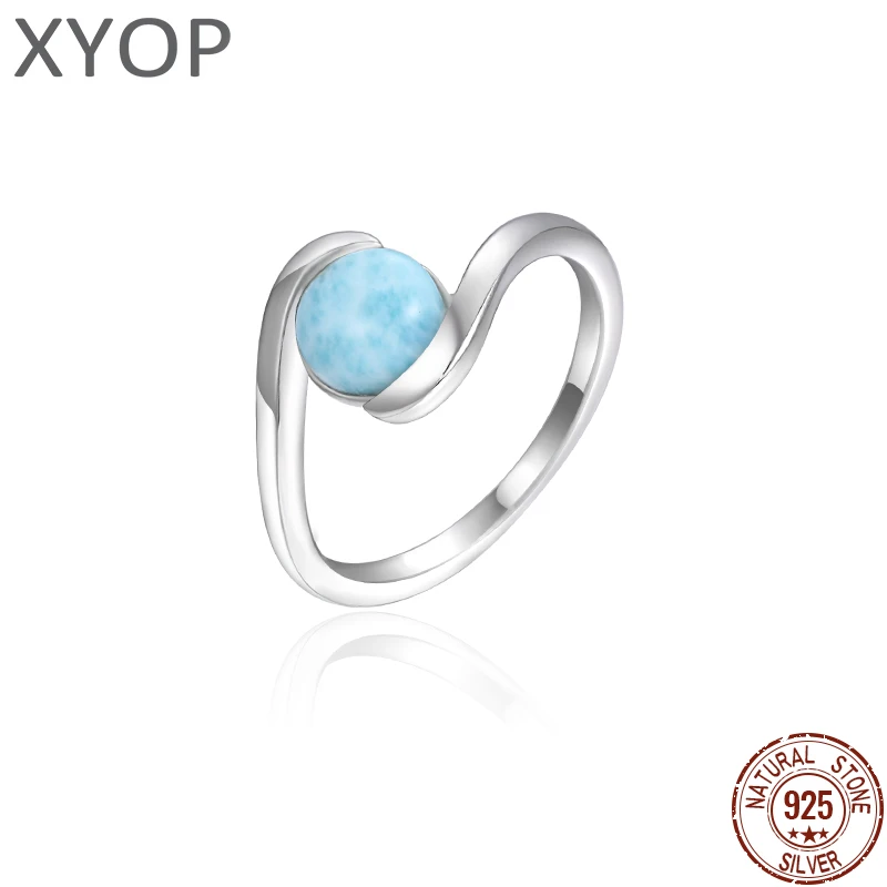 Bague Larimar en argent regardé 925 avec pierres précieuses naturelles pour femme, bijoux féminins simples classiques, design géométrique, style cour, rencontres