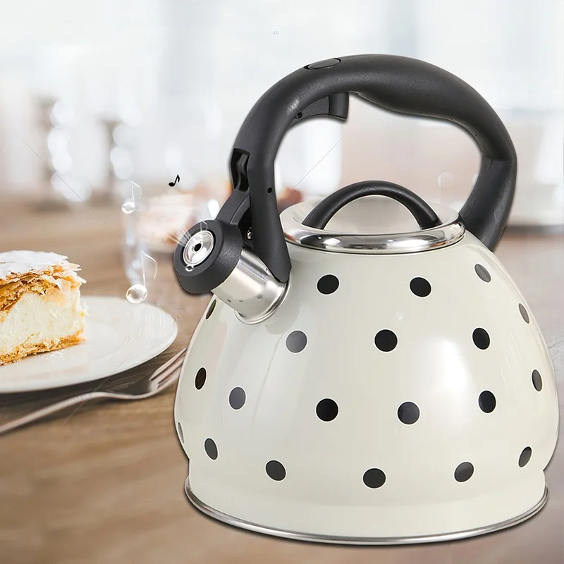 Bouilloire à pointe ondulée en acier inoxydable 304, 3l, noir et rouge, sifflet sphérique, marmite à eau chaude, cuiseur à Induction, fournitures de cuisine domestique
