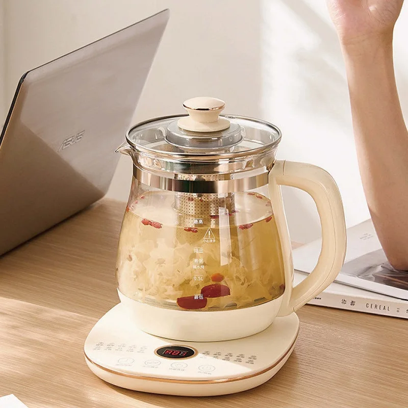 Pot de santé multifonctionnel de 1000ml, Machine à thé en verre pour maison/bureau, théière à fleurs de voyage Portable 12h, bouilloire électrique pour garder au chaud 400W