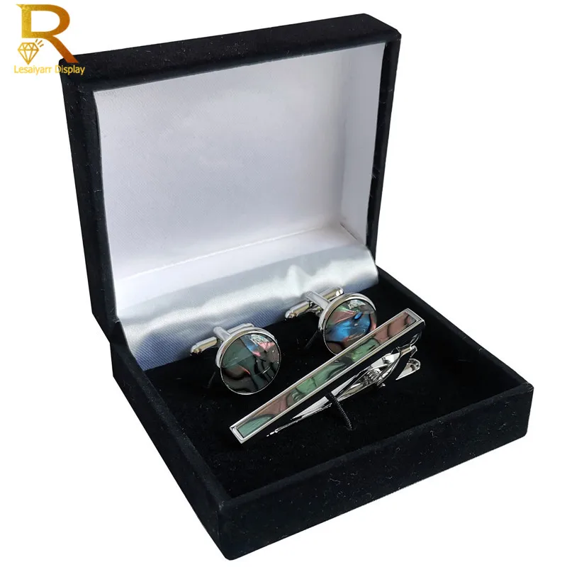 Boîte-cadeau de boutons de manchette en velours noir pour hommes, étui de transport de boutons de manchette de chemise Gemelos, boîtes à clips, vente en gros