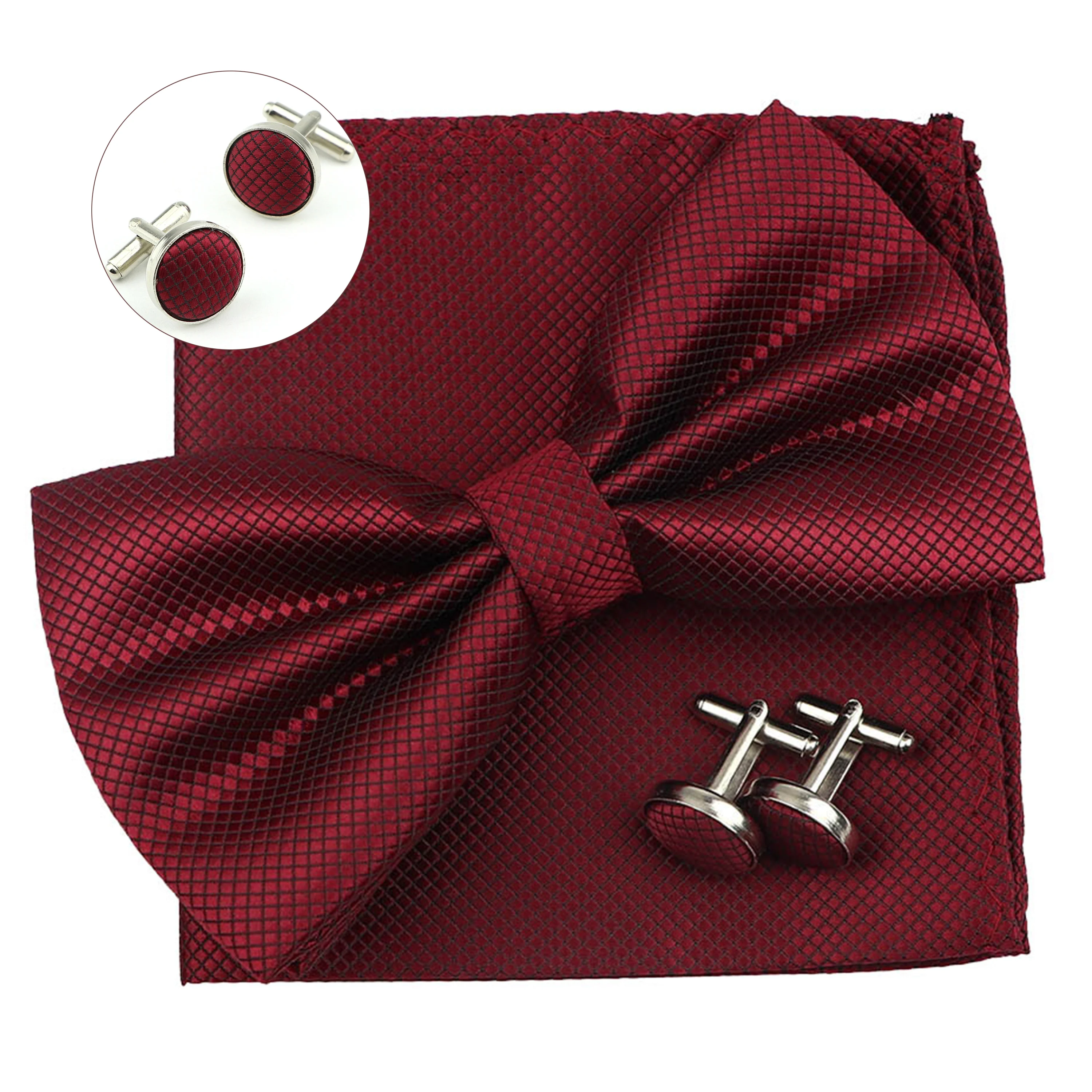 Ensemble de boutons de manchette à gros nœud papillon pour hommes, mouchoir floral, double possède, nœuds papillon rouges, carrés de poche, mariage, nouveau