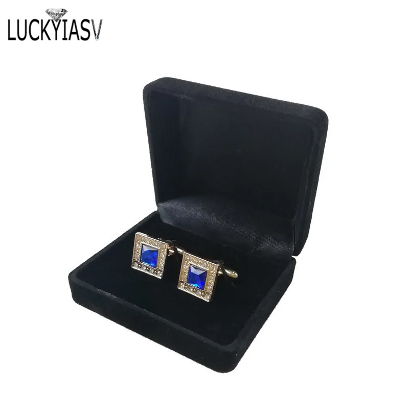 Gros boutons de manchette en velours noir boîte-cadeau hommes chemise boutons de manchette Gemelos étui de transport boutons de manchette cravate pinces boîtes 70x80mm