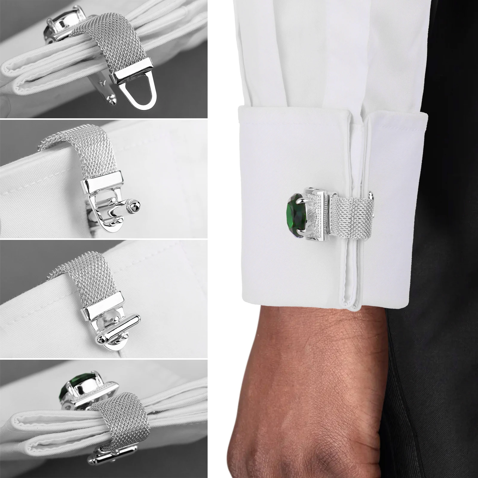 Ensemble de boutons de manchette Paisley Green InjMen, jarretelles, nœud papillon, mouchoir, en forme de Y, 6 clips, fête de mariage, affaires, mode