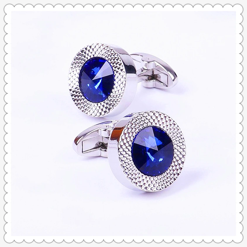 Lèvent de manchette de chemise français pour hommes et femmes, boutons de manchette simples, métal de haute qualité, cristal bleu, banquet d'affaires, discours de mariage, cadeaux