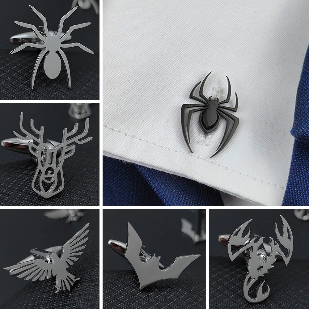 Boutons de manchette crâne araignée chauve-souris en acier inoxydable pour hommes, boutons de chemise, cravates pour vêtements pour hommes, boutons de manchette décoratifs Punk foncé, bijoux cadeau