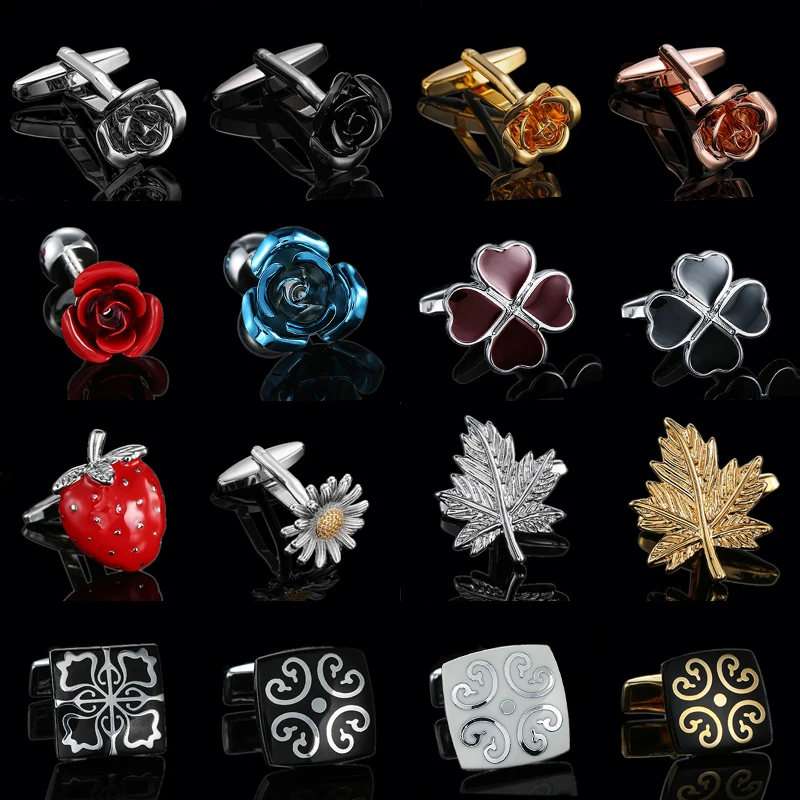 Boutons de manchette de chemise française pour hommes, haute qualité, amour Rose, trèfle porte-bonheur, feuille d'érable, prune, boutons, accessoires de costume, bijoux, vente en gros