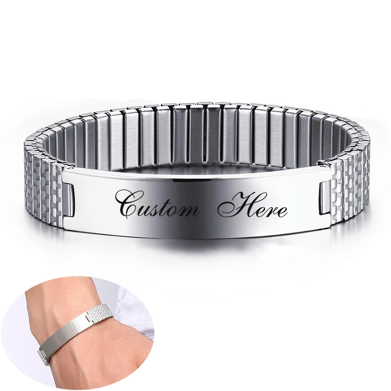 Hommes femmes personnaliser graver nom Image Bracelet extensible avec bande élastique en acier inoxydable bracelets personnalisés bijoux unisexe