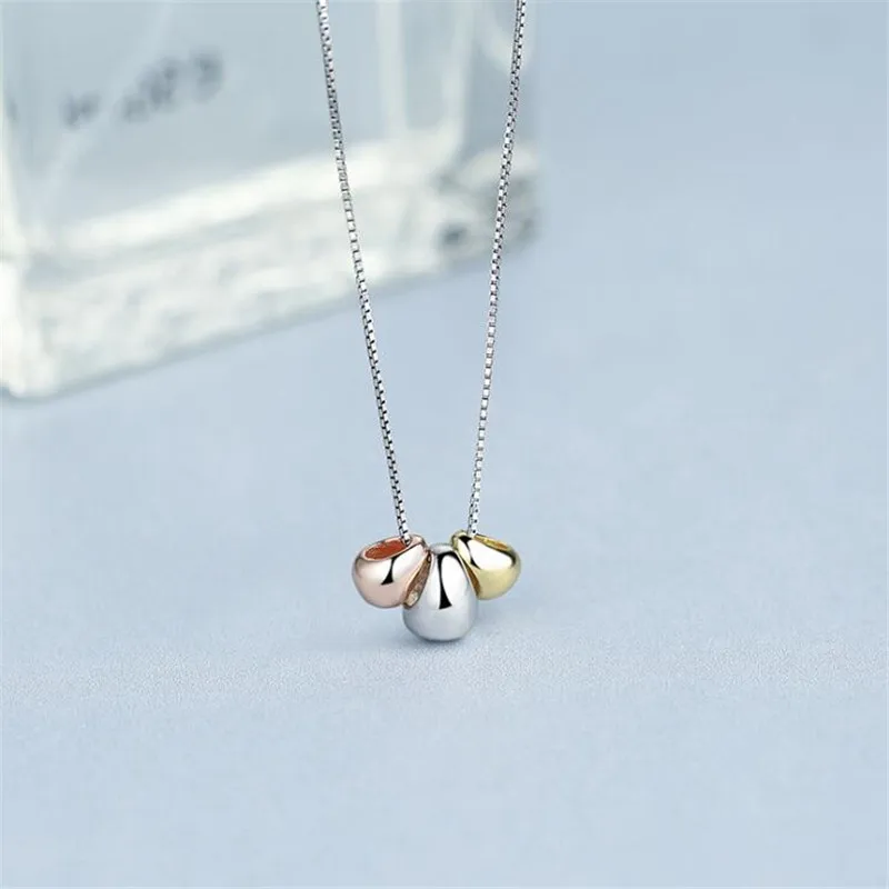 Nouveau tempérament Simple trois couleurs oeuf d'ange 925 bijoux en argent Sterling haricot doré clavicule chaîne pendentif colliers XL014