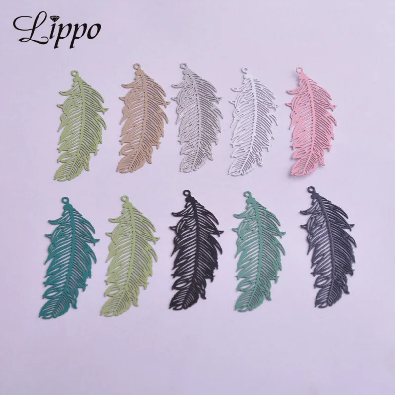 30 pièces AC11671 14*40mm breloques en plumes en laiton accessoires de bijoux à bricoler soi-même