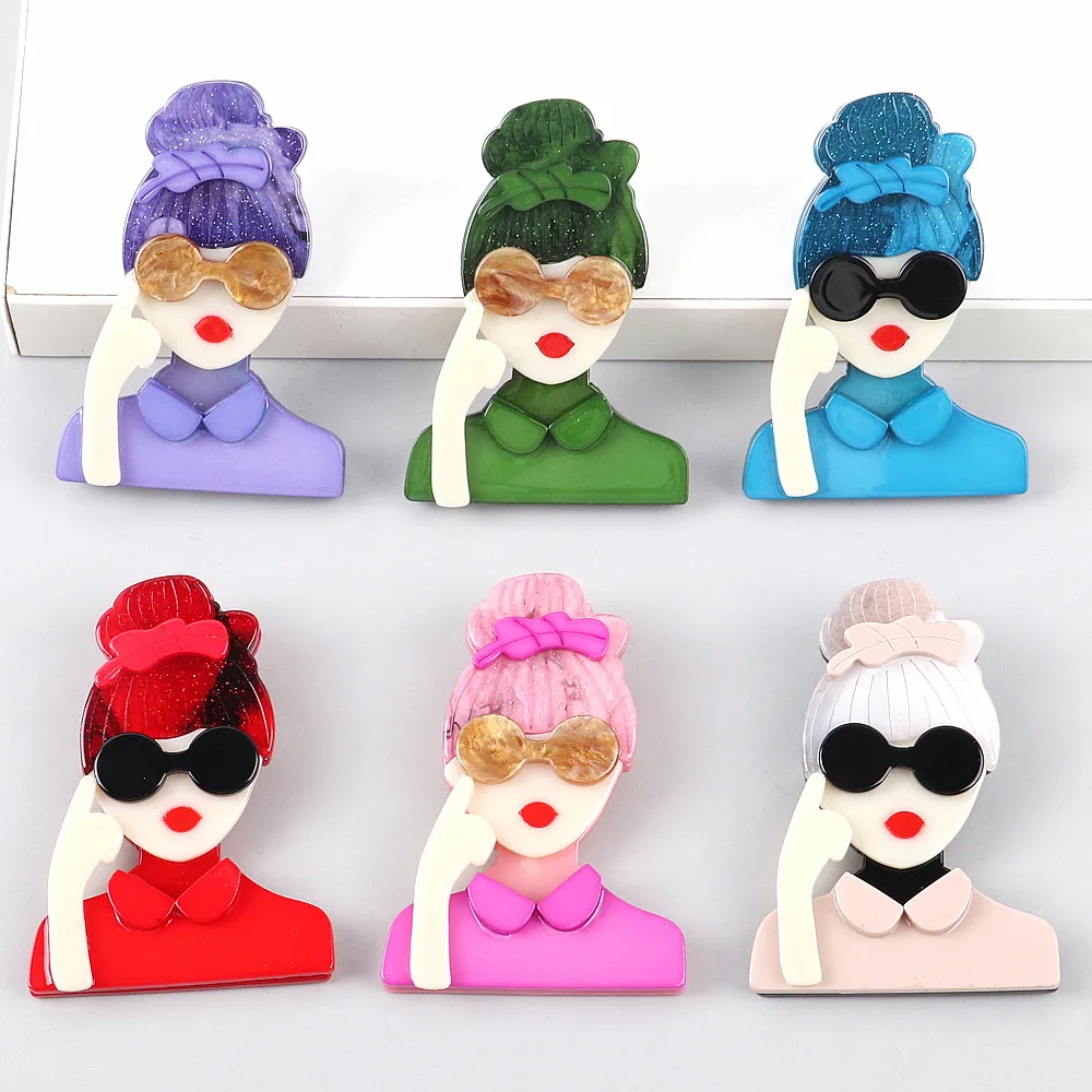 Nouvelles lunettes colorées fille broches acryliques pour femmes mignon feuille épingle à cheveux dame broche Badge broches bijoux décontractés accessoires mignons