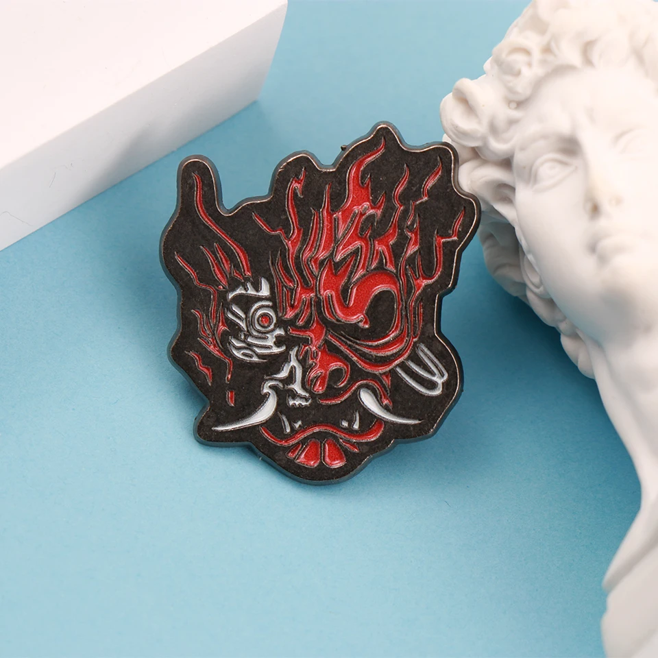 Tête de crâne du diable rouge, broches amusantes en métal, Badges, sac à dos, accessoires pour vêtements, vente en gros, bijoux cadeau pour hommes
