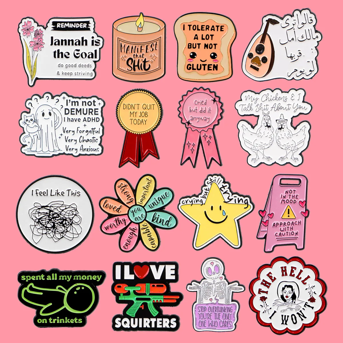 Broches en émail avec citations humoristiques, broches de dessin animé pour femmes et hommes, épingles à revers, Badge sur sac à dos, accessoires de Costume, bijoux cadeaux pour amis