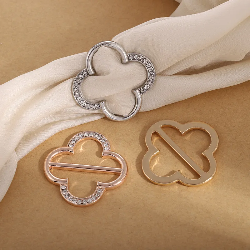 Broche nouée à la taille pour ourlet d'angle, trèfle à quatre feuilles, écharpe Hijab en métal, chemise boutonnée, T-shirt, boucle fixe, nouvelle collection