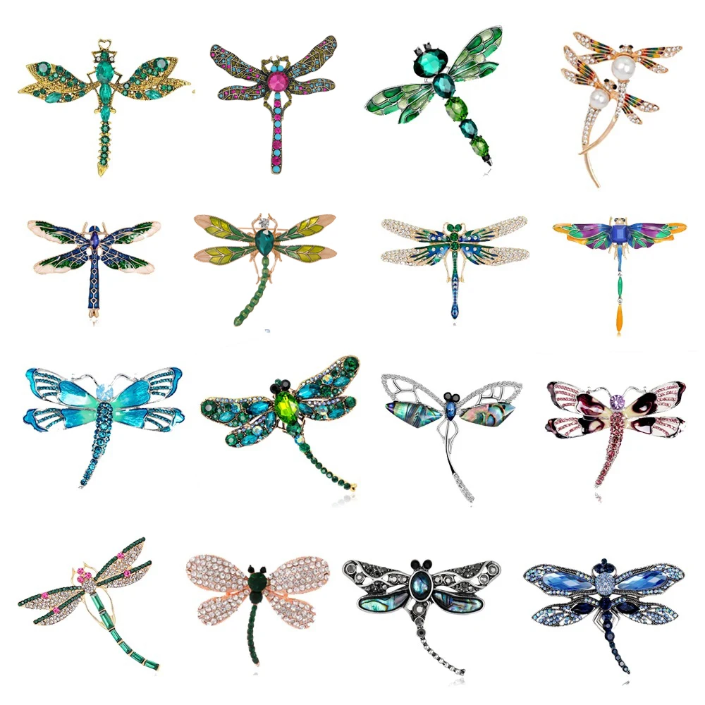 Broche libellule ornée de cristal en alliage pour femmes, broche d'insecte, accessoires de manteau de robe à la mode, ornement de broche premium