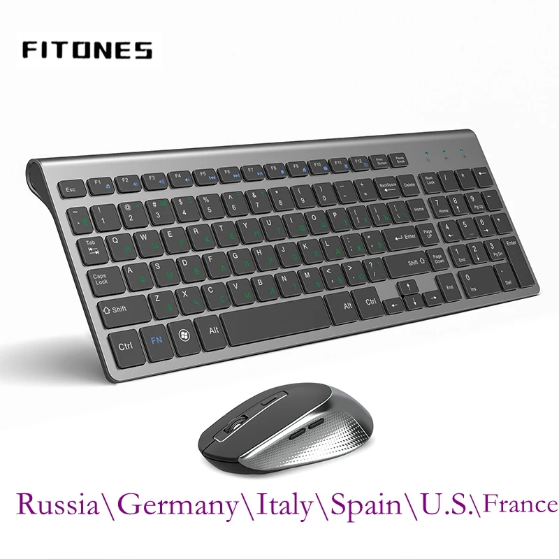 Russe Espagne USA Français Ltalian Allemand UK disposition Clavier et souris sans fil Combo Souris silencieuses pour PC portable, ordinateur Windows.