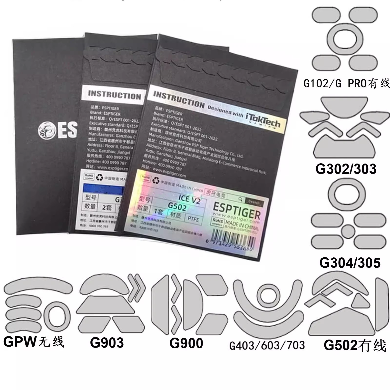 1 paquet d'origine ESPTIGER ICE Version Arc 1 2 pieds de souris patins pour Logitech G Pro sans fil G102 G304 G403 G502 G900 G903 0.8mm