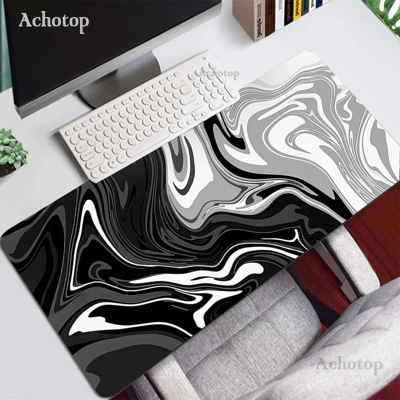 Grand tapis de souris de jeu noir et blanc, grand tapis de souris pour ordinateur de jeu, bord de verrouillage, clavier de bureau