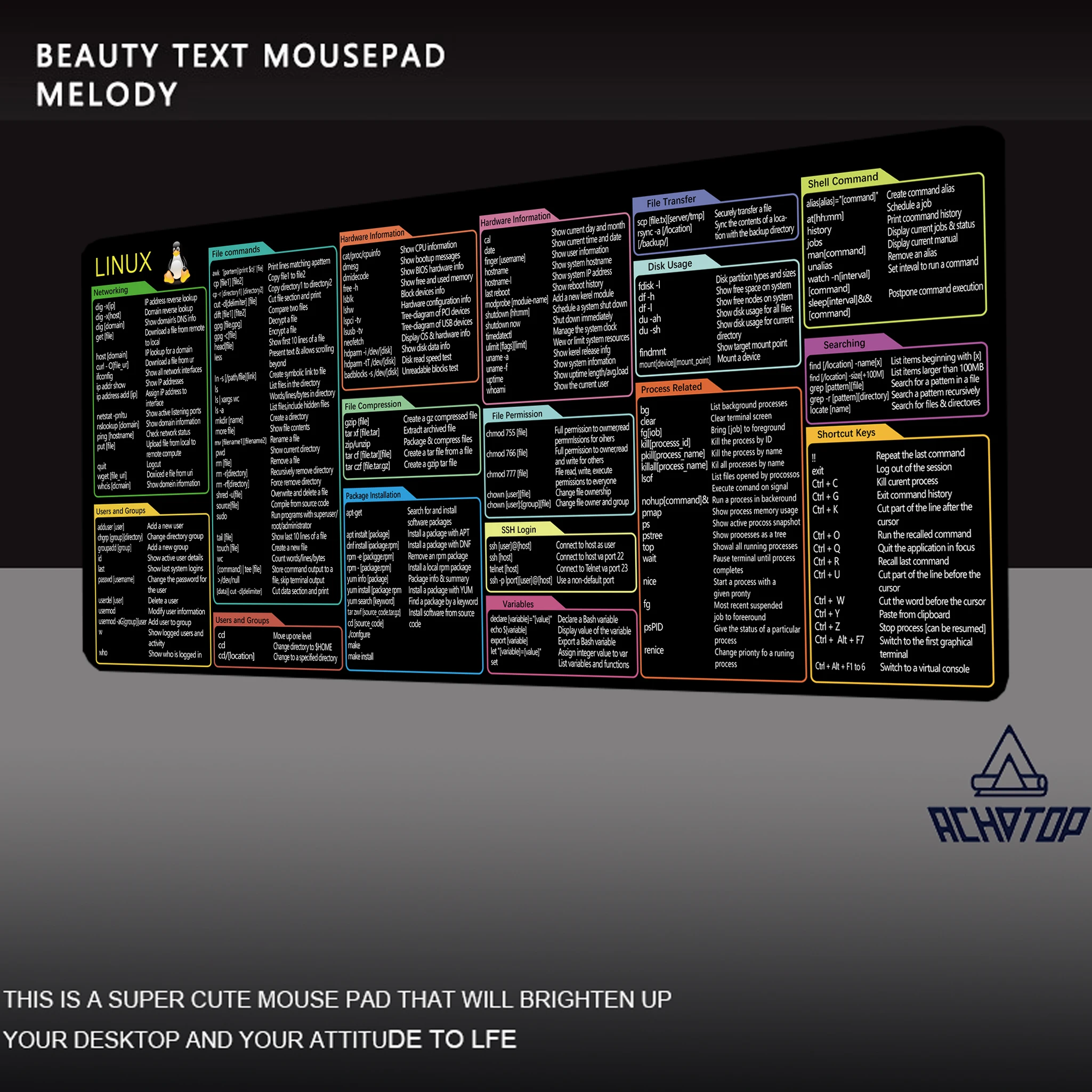 Grandes commandes bureau de jeux tapis de souris raccourcis UNIX programmeur VERSION LINUX PAD antidérapant XXL GAMER bureau TABLE tapis d’ordinateur