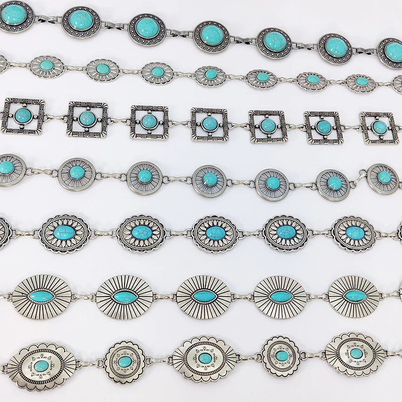 Chaîne de taille circulaire bohème en argent pour femmes, ceintures de luxe en pierre précieuse bleue, chaîne Ellipse, adaptées aux jupes et aux robes