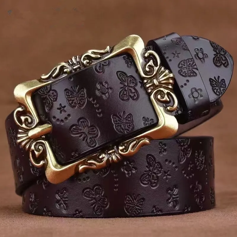 Ceintures pour femmes en cuir véritable ceinture en peau de vache large rétro mode coréenne polyvalente décorative jean ceinture pour les femmes