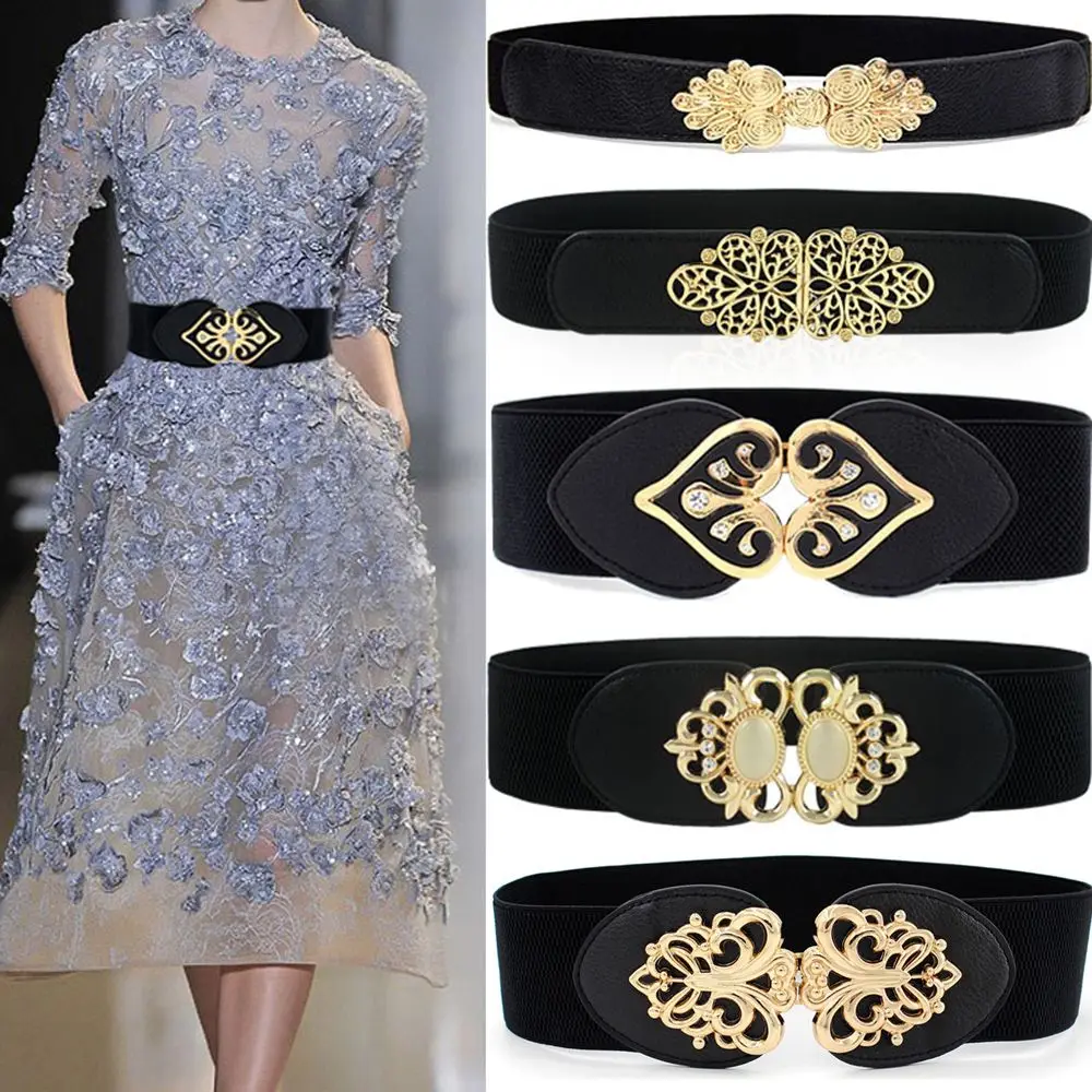 65cm mode noir ceinture large taille boucle élastique ceinture extensible femmes Cinch ceinture robe manteau sangle vêtements accessoires