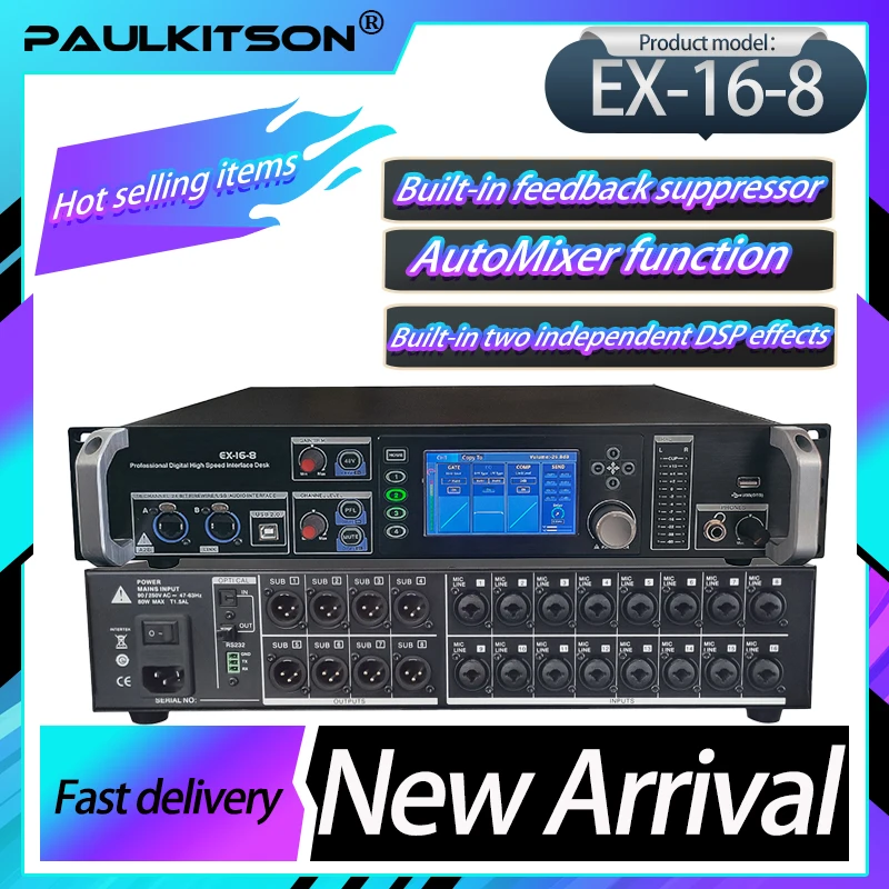 Paulkitson EX16-8 Mixeur d'effets numérique, équipement audio, amplificateur de karaoké, système audio