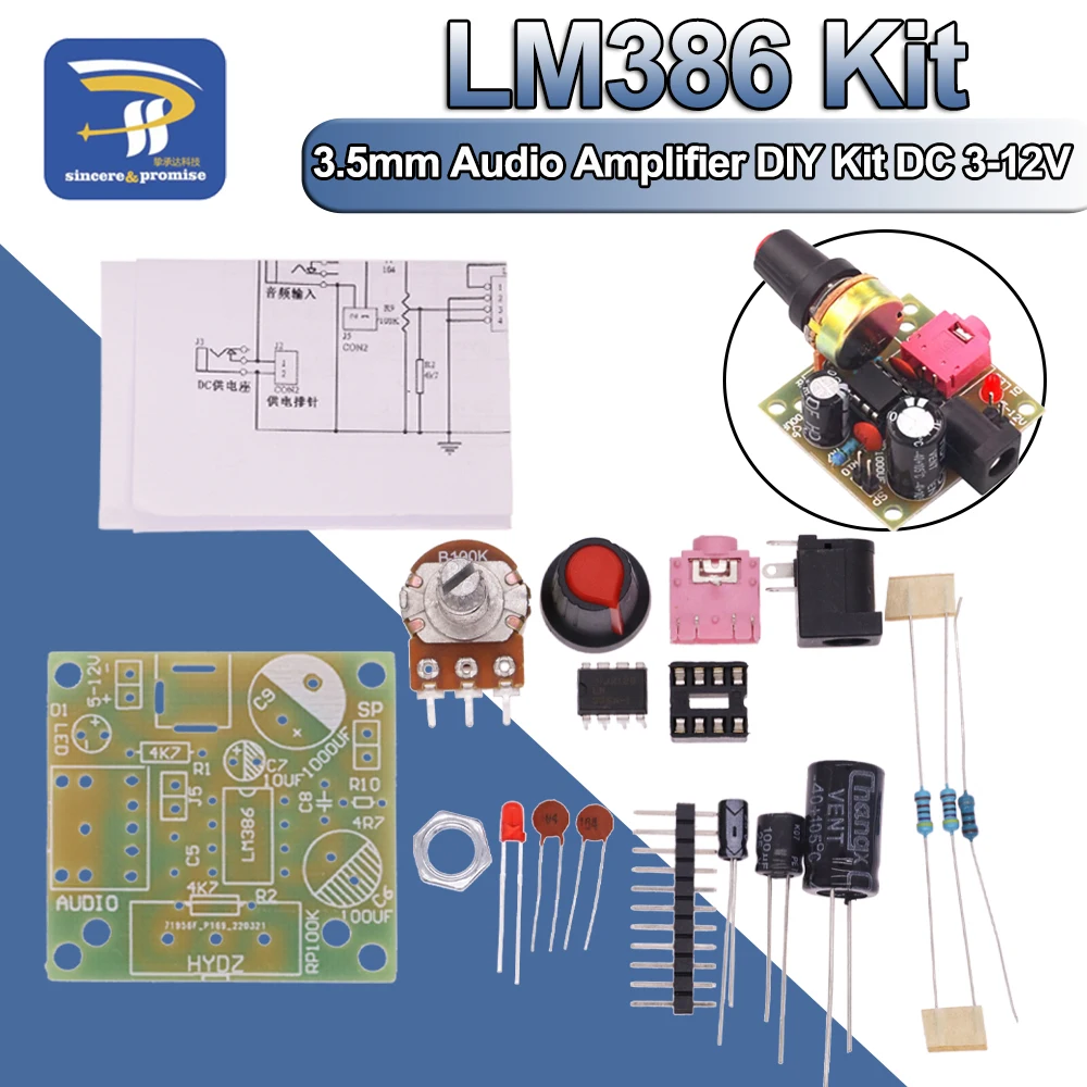 Mini amplificateur audio LM386, kit de bricolage, 3.5mm, 3V-12V, suite d'amplificateurs de puissance, surintendant sse, carte technique au-delà de TDA2030