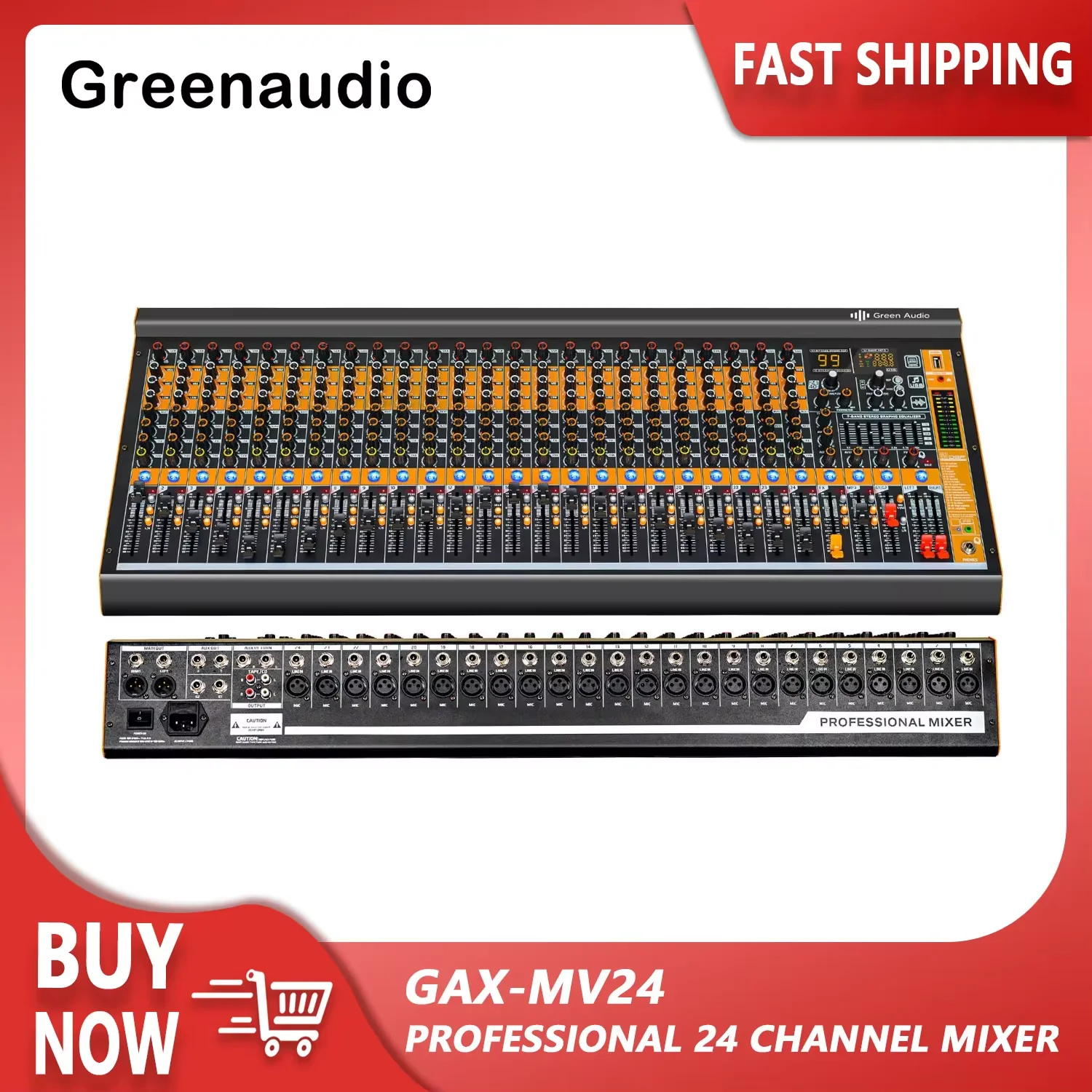 Mélangeur Audio USB professionnel 24 canaux, vert GAX-XM24, avec enregistrement AUX, Console Audio DJ sur scène