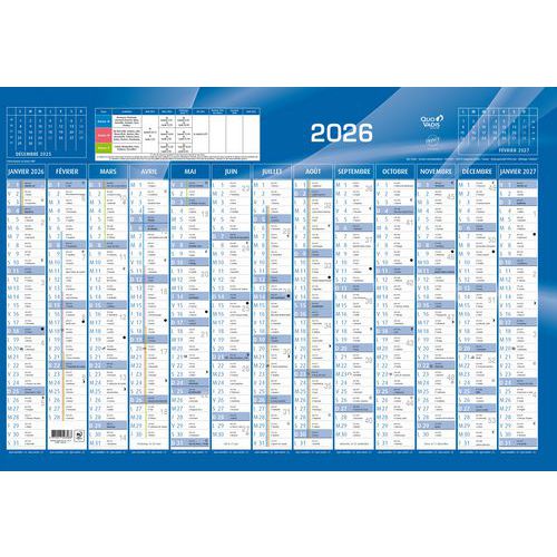 Calendrier Annuel Horizontal - 65 X 43 Cm - 13 Mois - Bleu - Quo Vadis