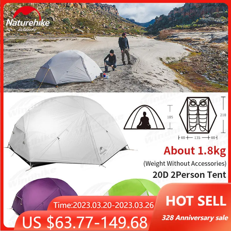 Natureifa-Tente double couche Mongar pour 2 personnes, tente de camping ultralégère, auvent extensible, randonnée en plein air, nylon étanche, 15D, 20D