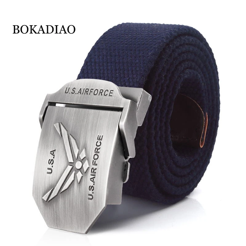 BOKADIAO hommes et femmes militaire toile ceinture de luxe US AIR FORCE métal boucle jean ceinture armée tactique ceintures pour hommes ceinture sangle