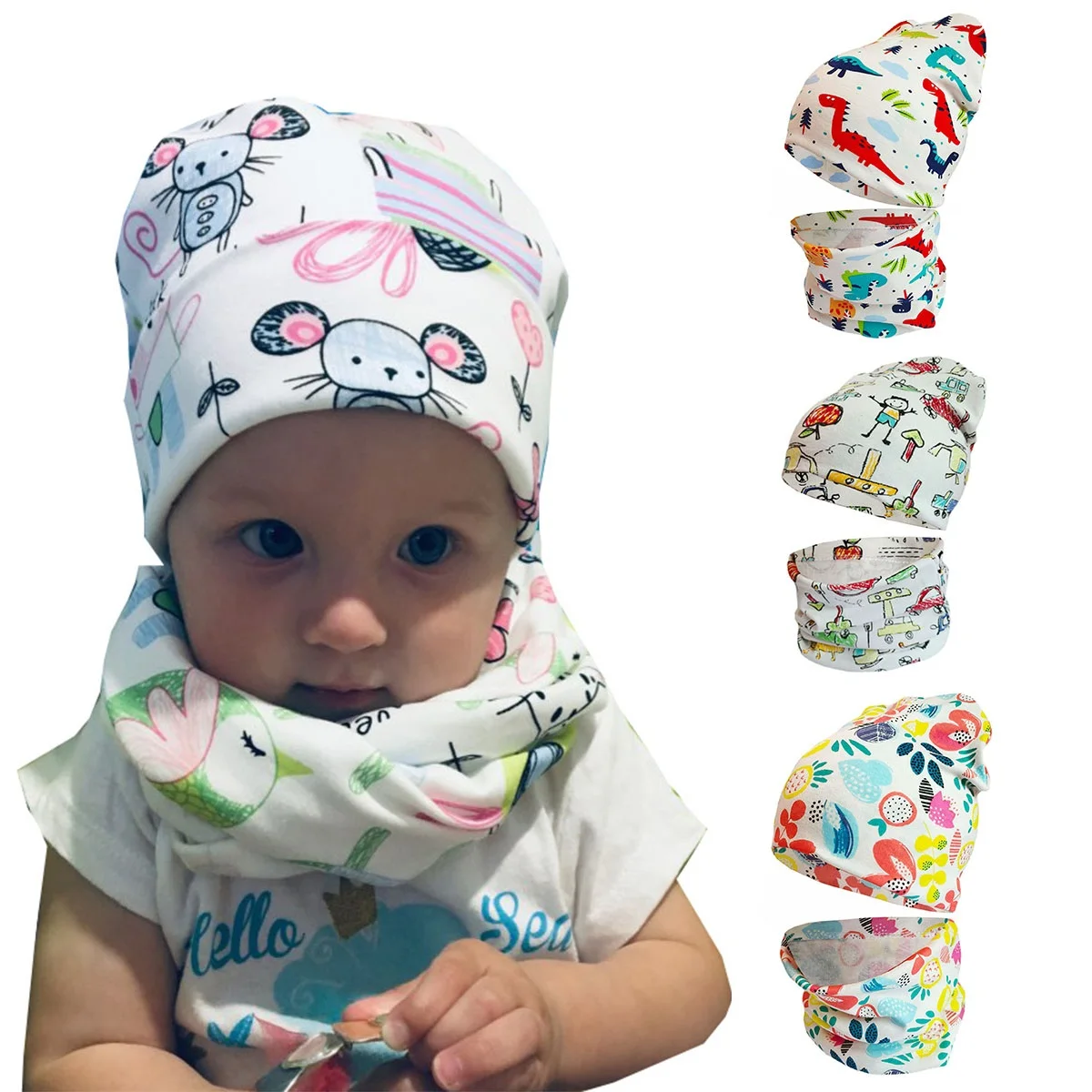 Ensemble bonnet et écharpe pour bébé, motif de dessin animé, bonnets pour bébé, bonnet pour garçon et fille, printemps, automne, hiver, 2 pièces