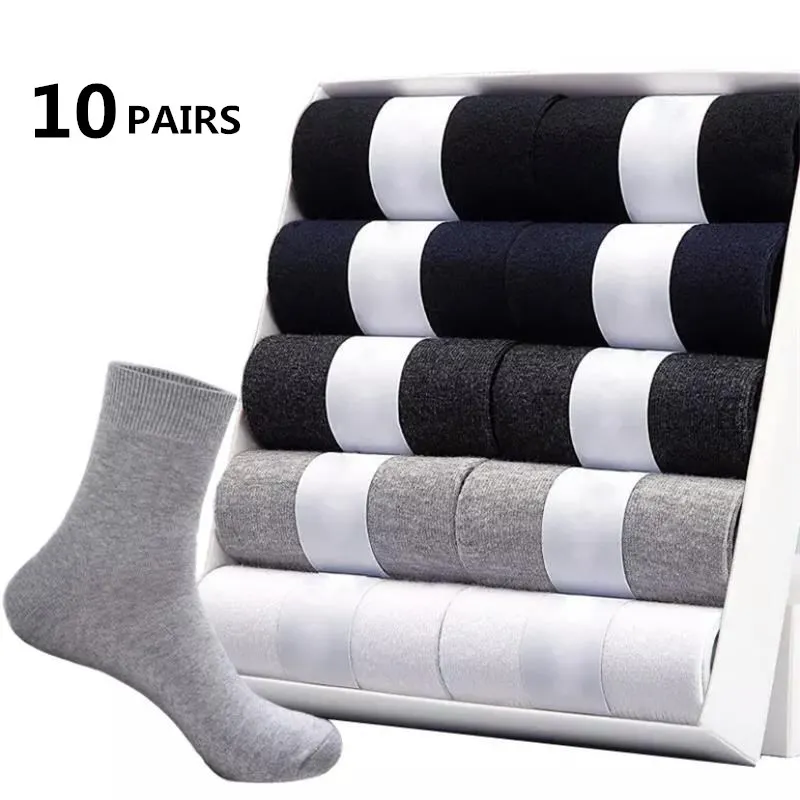 10 paires/chaussettes pour hommes Polyester coton Tube moyen chaussettes été mince couleur unie respirant affaires hommes chaussettes hommes livraison directe