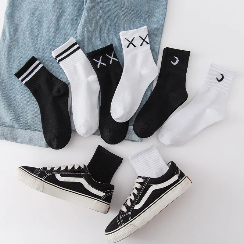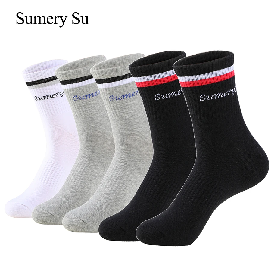 Rayé solide couleurs coton unisexe chaussettes Streetwear Harajuku noir blanc Couples Skateboard tricoté décontracté sport mode chaussettes