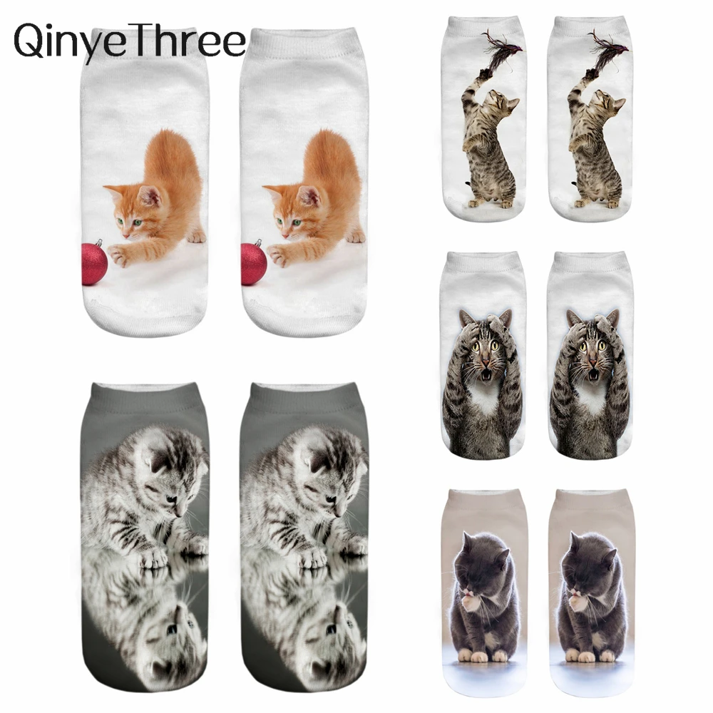 Nouveau chaud impression 3D drôle mignon dessin animé chaton unisexe chaussettes courtes créatif coloré Multiple chat heureux bas cheville chaussettes pour les femmes